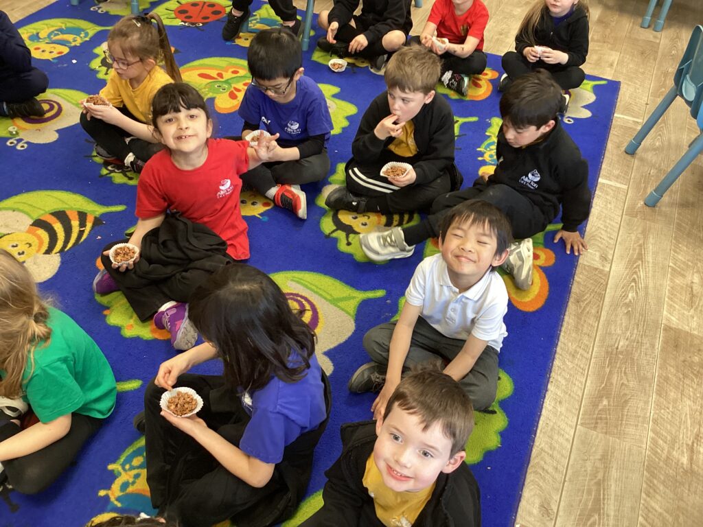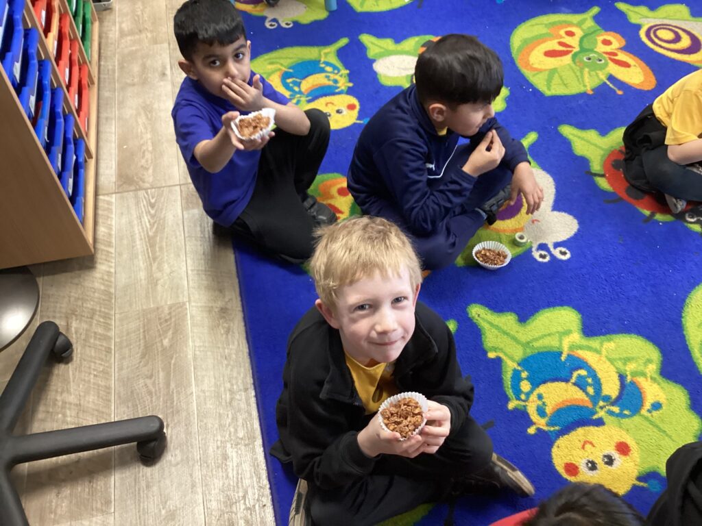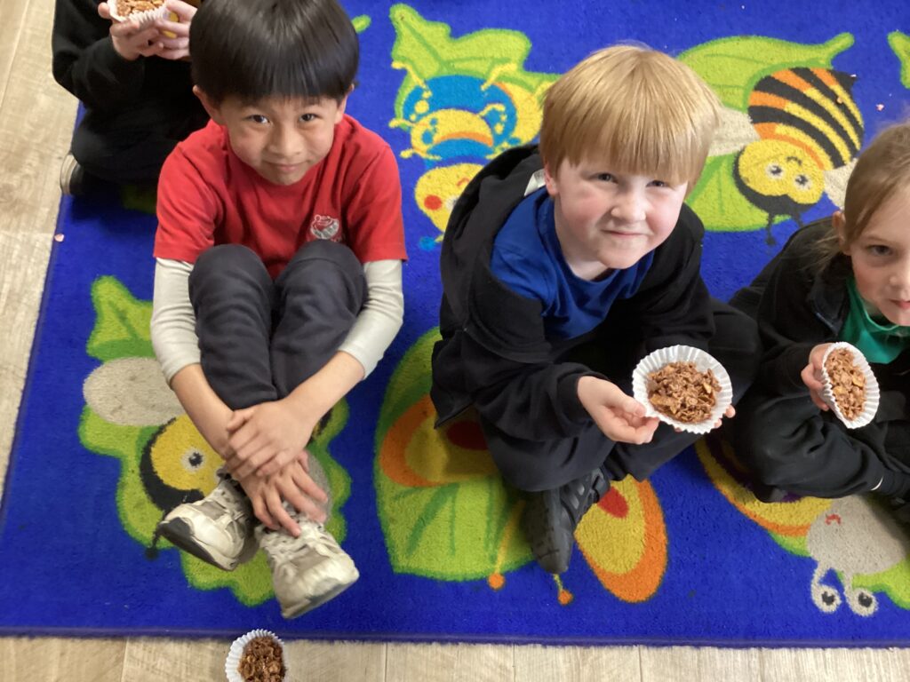In 1C today we were getting ready for Easter! We worked together to make Easter nests. They were delicious! I hope everybody has a fantastic break!