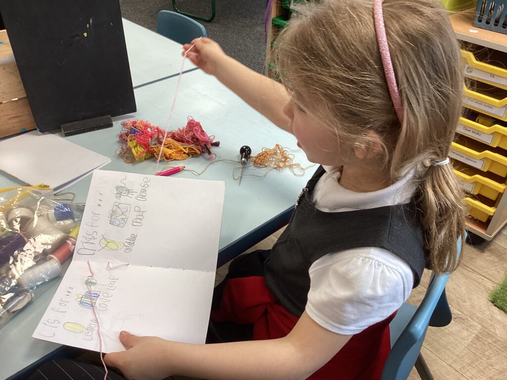 Last week in D.T we started sewing our alphabet books. We learnt about how we are going to bind them using a saddle stitch. The children have been working really hard on these alphabet books for the last 4 weeks. They have designed their own front covers, blurbs and drawn pictures for each letter of the alphabet. We can’t wait to see what the end product looks like!